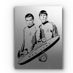 A great piece of Trekkie silhouette art, depicting Captain Kirk and Spock behind the USS Enterprise.