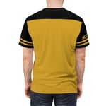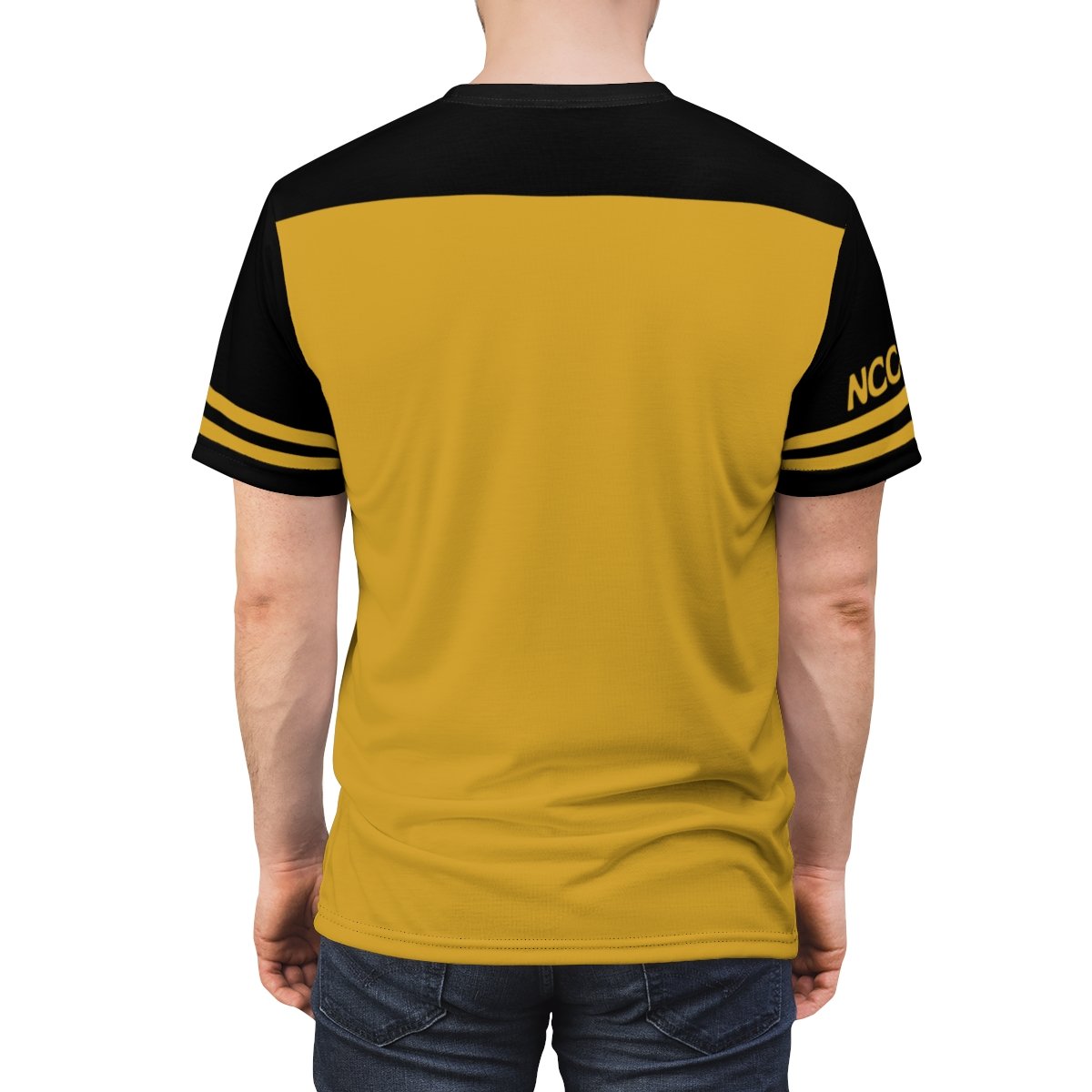 Step out in this vibrant and unique Star Trek tee shirt. Inspired by the Star Trek TOS uniform, this t shirt is the perfect way to flaunt your love of Star Trek in style!